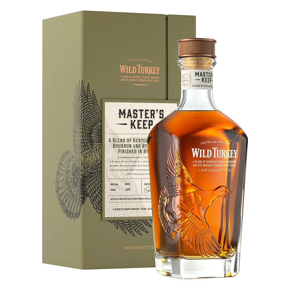 Released in late 2022, Wild Turkey's renowned Master's Keep Collection presents "The Unforgotten," a masterfully crafted blend of premium bourbon and rye whiskeys. As the second rye release in the series, following the acclaimed Cornerstone, this 105-proof whiskey combines 13-year-old rye with 8- and 9-year-old ryes, then finishes the blend in rye casks. Inspired by the serendipitous creation of Wild Turkey's original Forgiven in 2010, "Unforgotten" offers a lively, playful profile. Aged in Russell's legendary Rickhouse B, it delivers bold aromas and an unforgettable taste from start to finish.